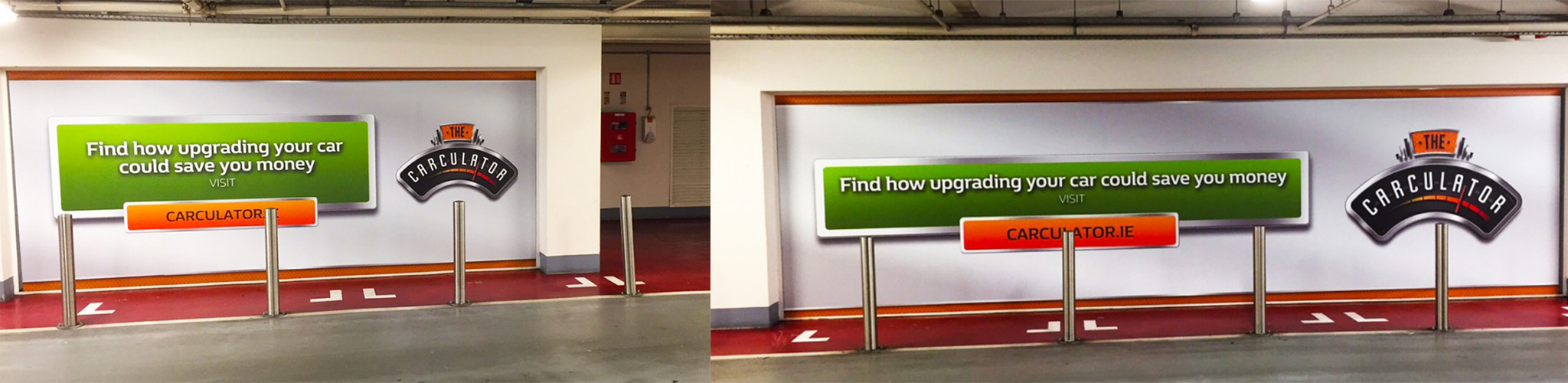 We love these vinyls we just installed for Renault’s Carculator campaign in Dundrum Centre’s carpark. Printed on white gloss blockout vinyl material they look fantastic, and really draw the passer’s by attention. Even better they’re finished with a matt lamination to increase longevity and the material is easily removable at the end of the campaign so no issues there!