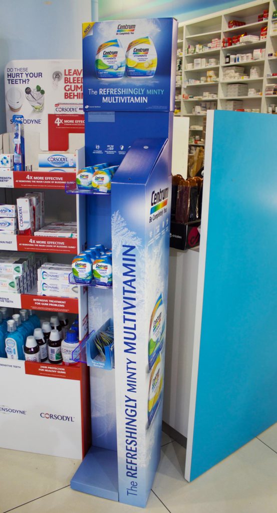 Horizon’s brief from the client was to design and produce this range of PoS and display material to support their Centrum VitaMints launch.