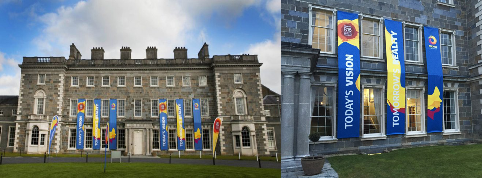 Delighted to once again work with Maxol in their sponsorship of the esteemed All Ireland Retailer Conference. Carton House Hotel is an amazing venue to produce event signage for, with it’s beautiful old facade and rooms that are filled with history and glamour.