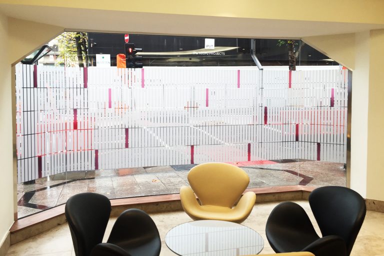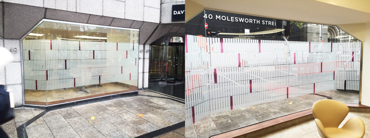 How super do these frosted vinyl windows look?!? Commissioned through Oliver Marketing for Davy’s Stockbrokers, they look incredibly slick and professional while also giving privacy where needed. The great thing about them is that they let in light, and instead of taking away from the room they actually give an added extra design feature that’s completely on brand. Love it!