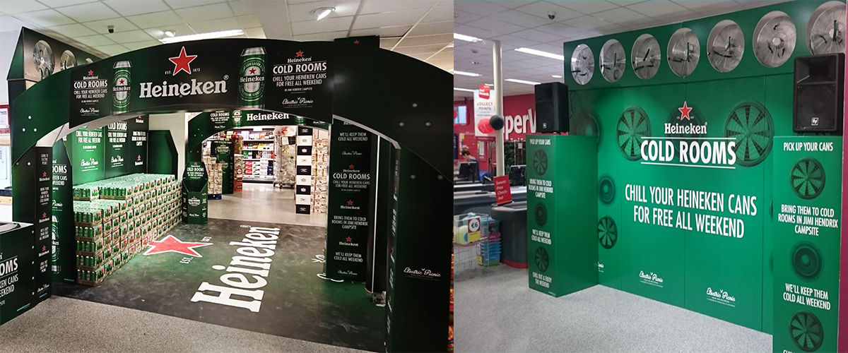 It included special builds, aisle arches, floor graphics and dump bins. On top of that fans were installed and Heineken organised a DJ to play in the store this year to make the whole concept really come to life!