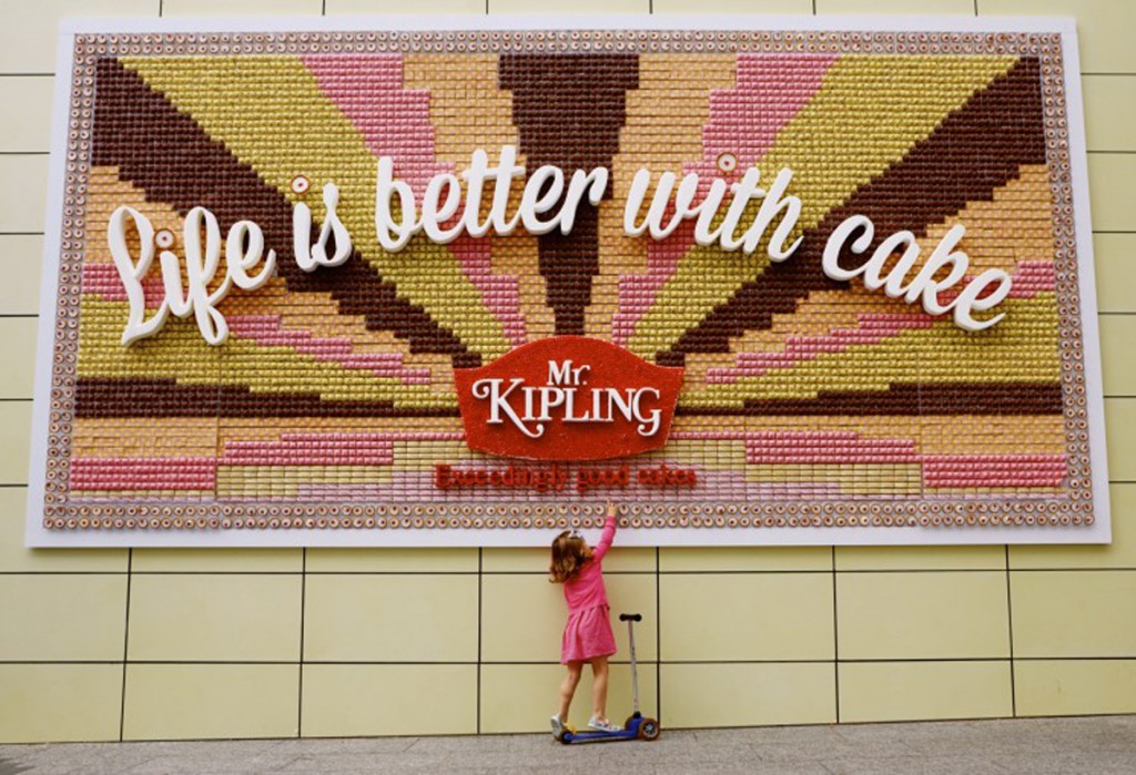 This is the first time i’ve seen an edible billboard (although please let me know if more are out there!) and my belly approves :-). JWT London arranged 13,360 individual Mr Kipling cakes in a delicious display of imagination in Westfield London. yummmm, life definitely is better with cake!