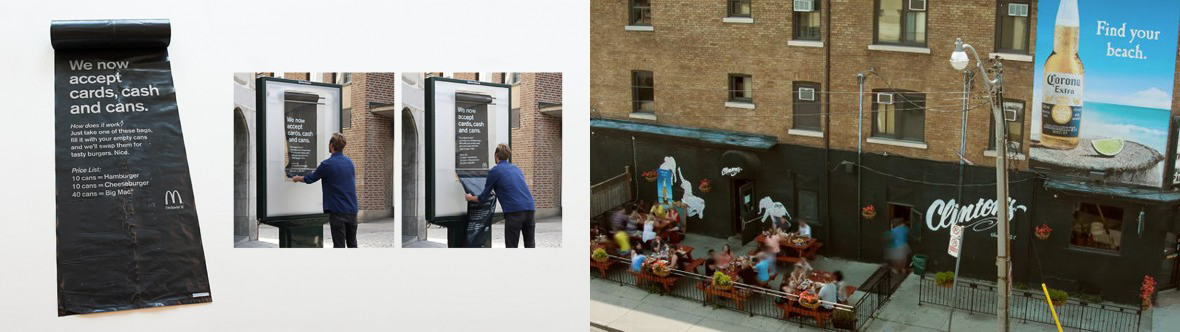 McDonalds have big spends and the best creative minds behind their campaigns and this one is no exception. DDB in Stockholm created this ‘trash bag billboards’ to promote a recycling initiative that allowed customers to exchange 40 cans for a Big Mac. So clever!