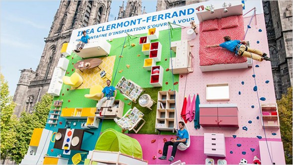 To herald the opening of it’s 30th store in France, Ikea tipped an apartment on its side, and made a rock climbing installation out of it. From the creative heads at Ubi Bene the nine meter tall wall was too tempting for passersby not to take a ramble on!