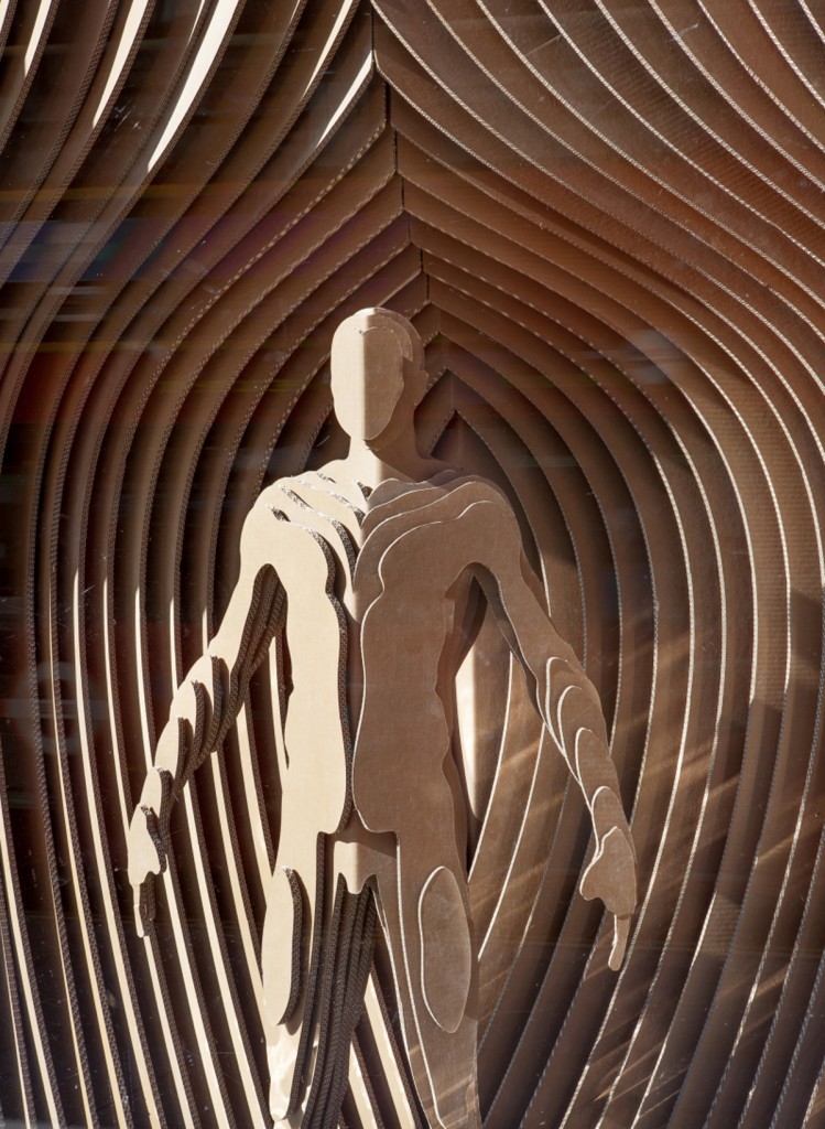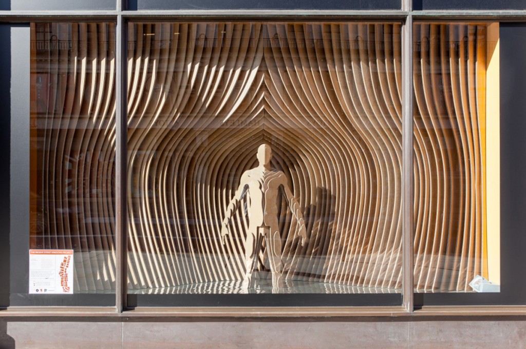 Really outstanding work from this years Regent Street displays. Here, Sybarite Architects have been inspired by GANT’s rich New Haven history. It represents an human figure emerging from the hull of a boat, although clearly it can be seen to have other connotations as well. Designed from special heavy duty corrugated cardboard we picked this one as the winner because of the simplicity of the material versus the passion in the message.